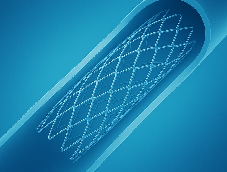 A tiny mesh tube inserted into arteries to restore blood flow and keep vessels open after they’ve been narrowed by plaque buildup.