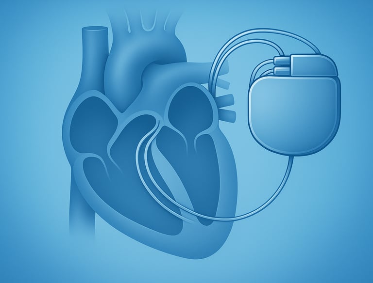 An implanted device that helps regulate slow or irregular heartbeats by sending electrical signals to maintain a normal rhythm.